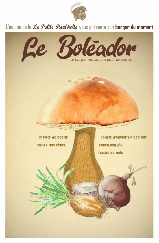 NOTRE CARTE Télécharger la carte de La Petite Roul’hotte Notre viande de bœuf est d’origine française. Nous utilisons des produits frais et notre pain est confectionné chaque jour par notre artisan boulanger.